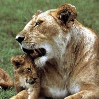 ![]() ![]() ![]() ![]() These lions, all being cuddled, display an open-mouthed response similar to saying "Aww!" |