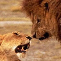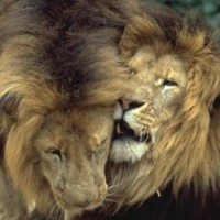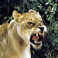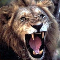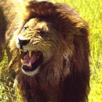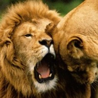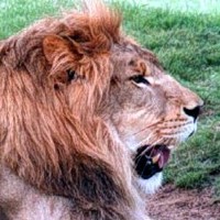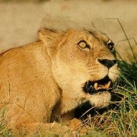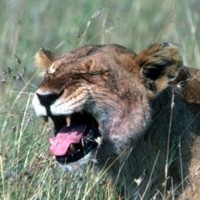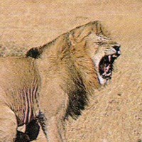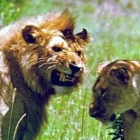 ![]() ![]() ![]() ![]() All three male lions here display a grin. All of them have a very good reason to smile, as you might guess. Note the lioness in the left photo is returning his gesture with an open-mouthed response. |