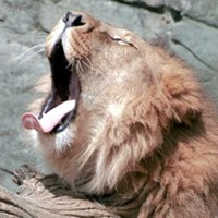 ![]() ![]() ![]() ![]() The lioness on the left is stretching. She shuts her eyes and the corners of her mouth turn down. The male in the center is yawning. The male on the right is roaring. The tongue does not stick out while roaring. Humans don't stick their tongue out when yawning or roaring... |