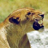 ![]() ![]() ![]() ![]() The lioness on the left is giving you an intent look that could signal any sort of approach, from stalking prey to preparing for a play. In the center is a typical calm face. The lion on the right is panting. |